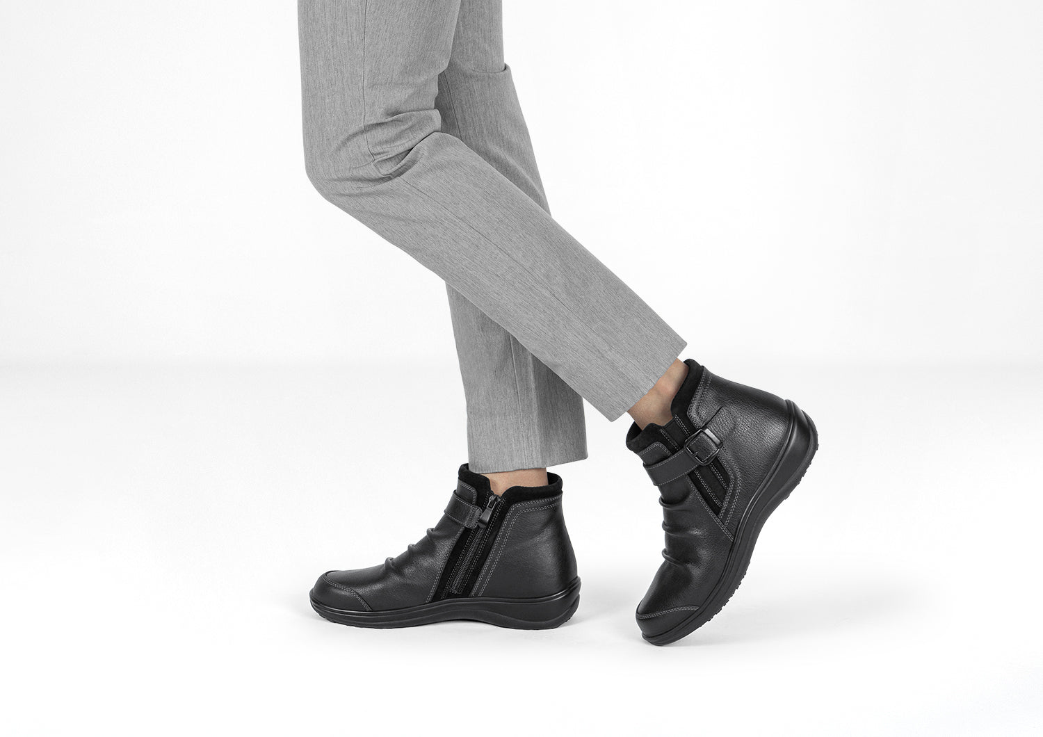 While an ultra-soft, ‘ruched’ leather upper charms with its versatile style, innovative Orthofeet features make Heidi a go-to bootie for getting more out of your day. Use the zipper on the inner side for remarkably easy on & off. The adjustable buckle, over stretch gore on the outer side, adds comfort that moves with you. Step out confidently with the Ortho-Cushion™ System.